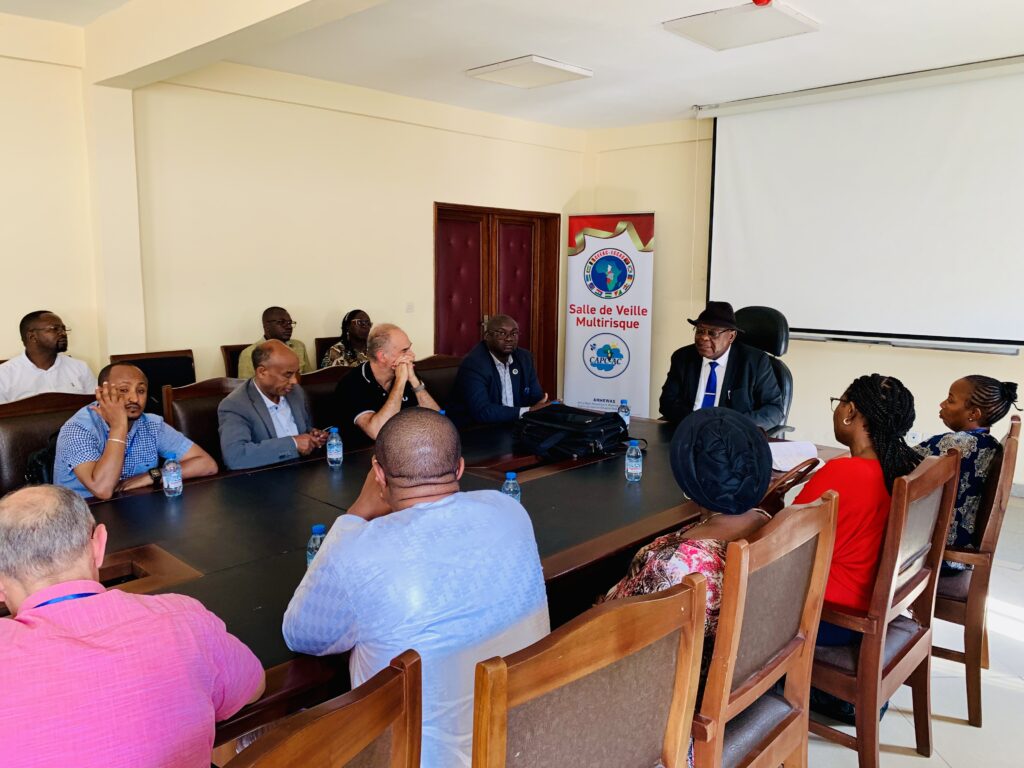 DOUALA, Cameroun – Le 22 avril 2026, la 4ème réunion de coordination et de co-production AMHEWAS (Africa Multi-Hazard Early Warning and Action System) s’est achevée par une étape marquante : la visite officielle des locaux du CAPC-AC